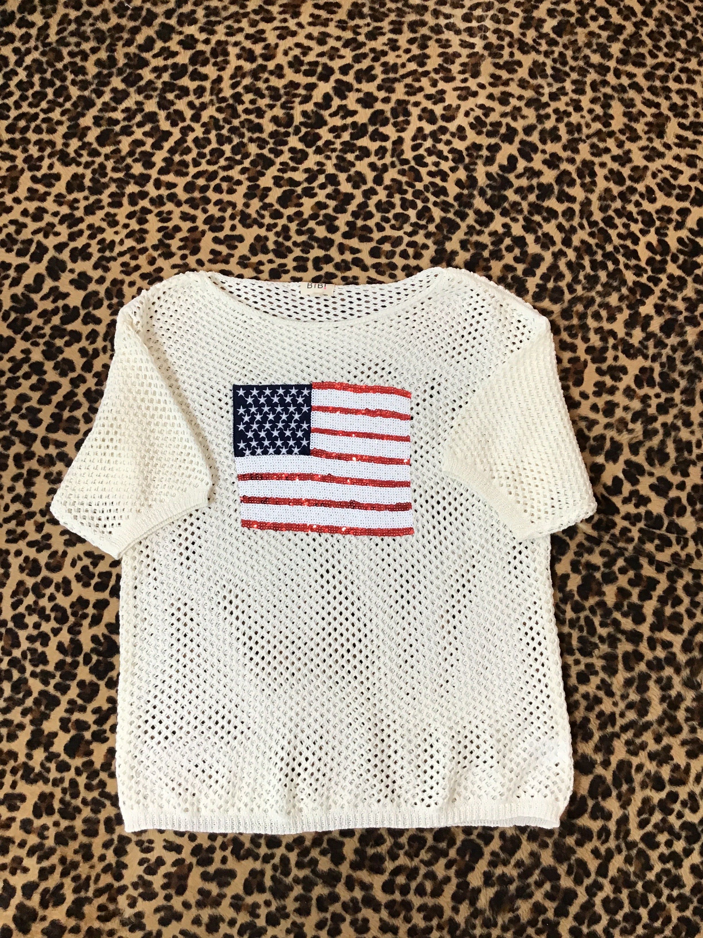 Fish net American flag tee